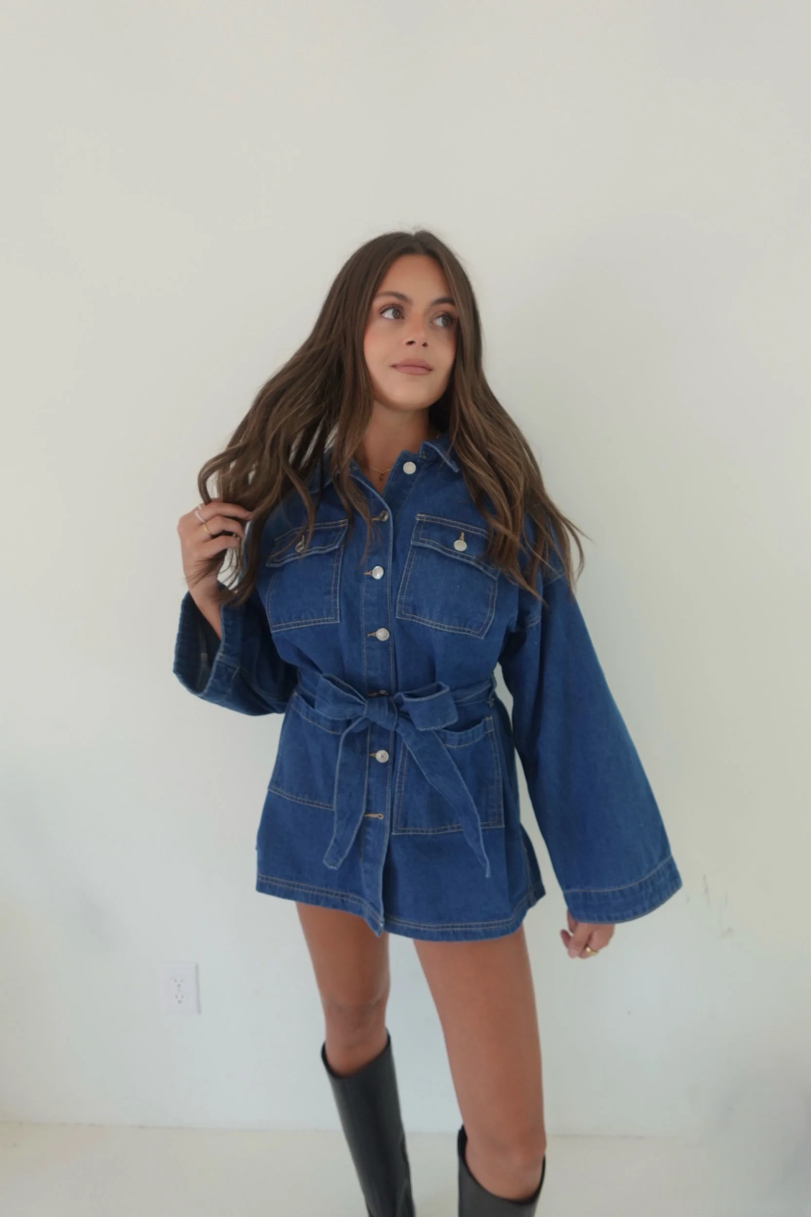 The Haley Oversized Denim Jacket is your new go-to layer — effortlessly cool with a touch of structure. Designed in a relaxed, oversized fit, this denim jacket features a removable waist sash that lets you cinch it in for a flattering shape or wear it loose for an easy, slouchy look. Whether thrown over a dress or styled with cargo pants, Haley adds instant edge to any outfit.
