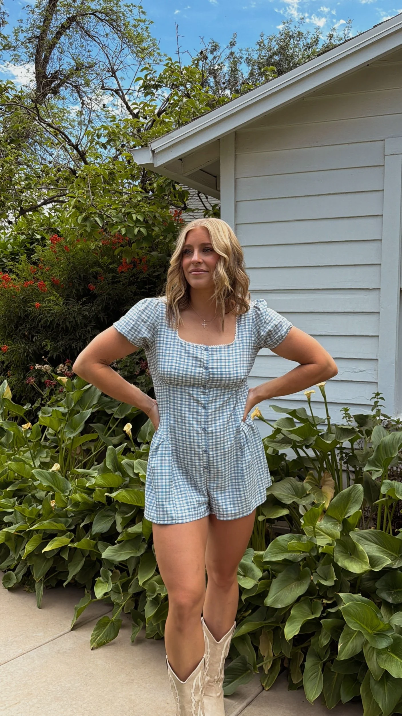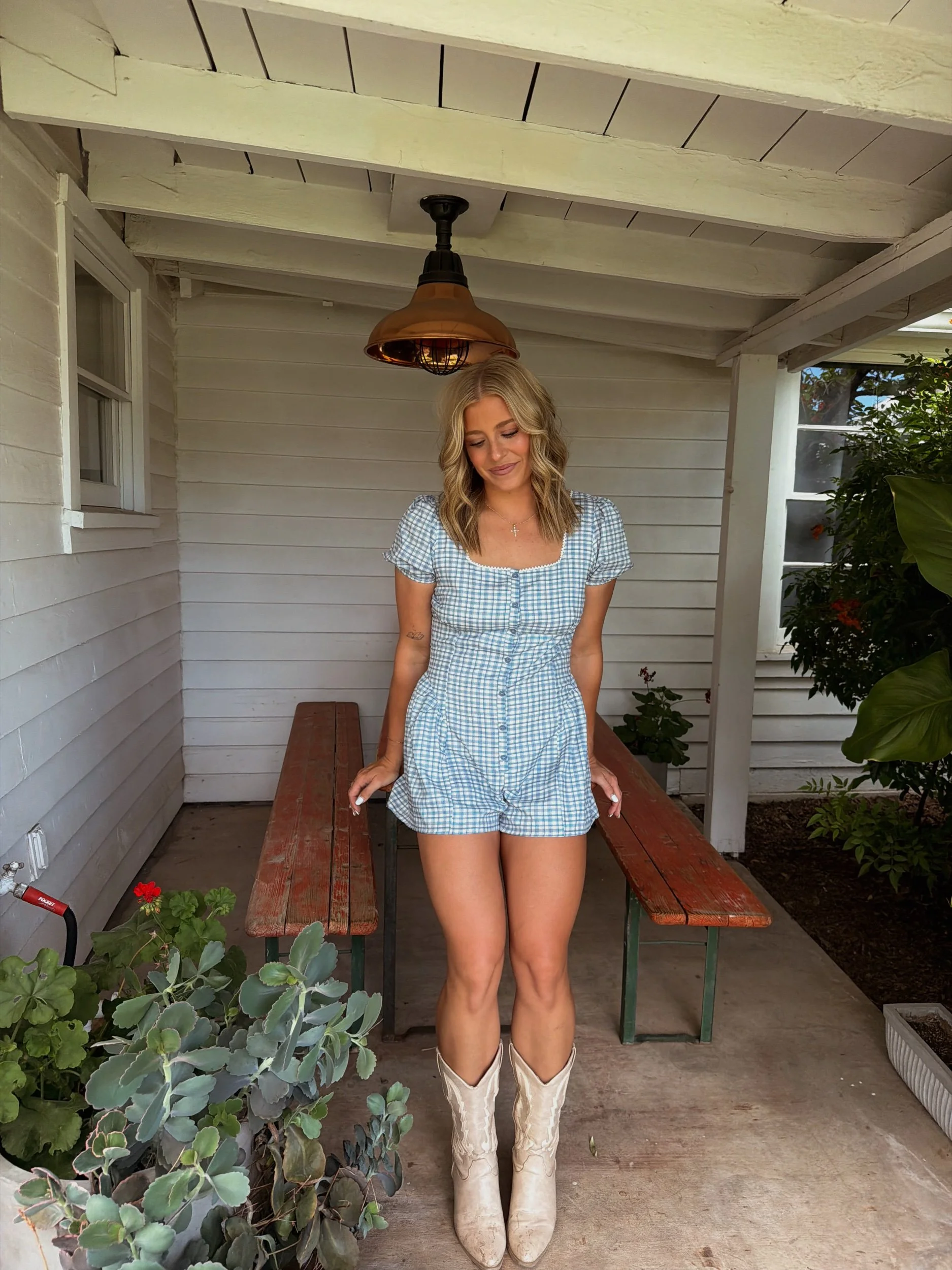 Step into summer with the Matilda Romper, a charming gingham plaid piece that blends vintage-inspired style with modern comfort. Designed with a flattering square neckline and delicate lace trim, this romper features playful puff sleeves and a functional button-front closure. The tailored bodice flows into breezy shorts, creating an effortlessly chic, all-in-one outfit perfect for sunny days.